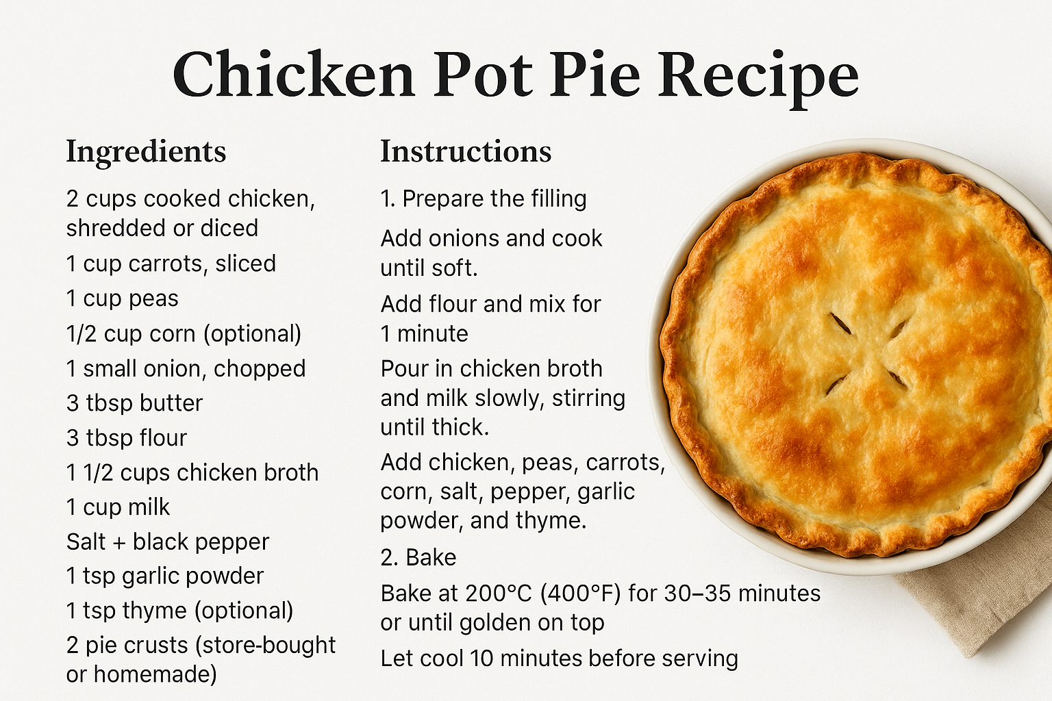 Bake at 200°C (400°F) for 30–35 minutes or until golden on top.
