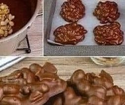 Line a baking sheet with parchment or wax paper. Drop spoonfuls of the chocolate-peanut mixture onto the sheet, forming clusters. - Set the clusters: