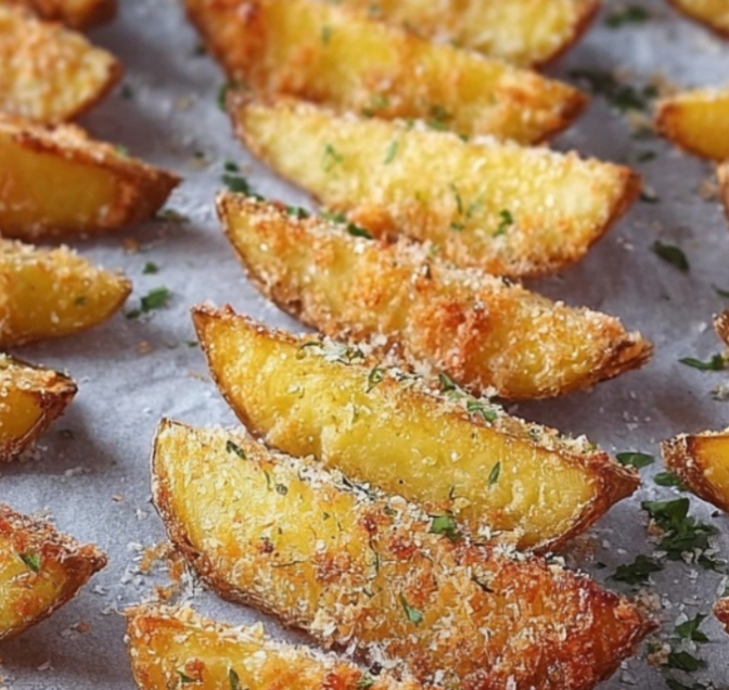 crispy, golden, and cheesy potato wedges