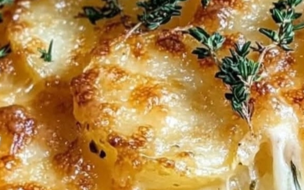 Crispy Parmesan and Gruyere Potato Gratin is the ultimate comfort food, combining thinly sliced potatoes with rich, creamy layers of Gruyere and Parmesan cheese. Baked to golden perfection, this dish features a crispy top and velvety interior that’s irresistible. Perfect for holiday feasts or weeknight dinners, it pairs beautifully with roasted meats or vegetables. The addition of garlic and nutmeg elevates its flavor profile, making it a standout side dish. Easy to prepare yet indulgent, it’s a recipe you’ll turn to again and again!Ingredients:4 large potatoes (about 2 pounds)1 cup grated Gruyere cheese1 cup grated Parmesan cheese2 cups heavy cream2 cloves garlic, minced1/4 teaspoon nutmegSalt and pepper to taste2 tablespoons butter (for greasing the dish)Fresh parsley (for garnish, optional)Instructions:1. Preheat Oven: Set your oven to 375°F (190°C). Grease a baking dish with butter for a non-stick base.2. Prepare the Potatoes: Peel and thinly slice the potatoes (about 1/8 inch thick). Use a mandoline for perfectly even slices.3. Make the Cream Mixture: In a mixing bowl, combine heavy cream, minced garlic, nutmeg, salt, and pepper. Stir until well blended.4. Layer the Dish:Spread half the potato slices in the greased baking dish.Pour half the cream mixture evenly over the potatoes.Sprinkle half the Gruyere and Parmesan cheeses on top.Repeat with the remaining potatoes, cream, and cheeses.5. Bake: Cover the dish with aluminum foil and bake for 45 minutes. Remove the foil and bake for an additional 30-40 minutes until the top turns golden and crispy.6. Cool and Serve: Allow the gratin to cool for about 10 minutes before serving. Garnish with fresh parsley for a pop of color and flavor (optional).CrispyPotatoGratin, ParmesanGratin, GruyereCheese, CheesyPotatoes, PotatoSideDish, ComfortFood, EasyRecipes, HolidayRecipes, PotatoLovers, GoldenCrispyTopPro Tip: Serve this Crispy Parmesan and Gruyere Potato Gratin as a side for roasted chicken, steak, or a festive holiday meal! It’s the ultimate comfort food your family will love.