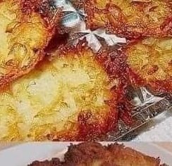 This is the true Potato Pancake (not Latke). We usually serve them on a Friday night (especially during Lent) with potato soup, bread and butter, the pancake topped with the traditional granulated sugar with applesauce on the side. We are a German/Polish family. Leftovers were taken in sandwiches with butter, salt and pepper for lunch. Don’t fret about the discoloration…it is a part of the pancake and never noticed after fried up. When 5 pounds of potatoes are grated by hand for a large family, the discoloration is not a problem.Don’t spend a lot of time and trouble drying out the potatoes, just drain in a colander and the flour takes care of the rest. If a little drains from the pancake in the fry pan, it will just add a nice crispiness to the edge.