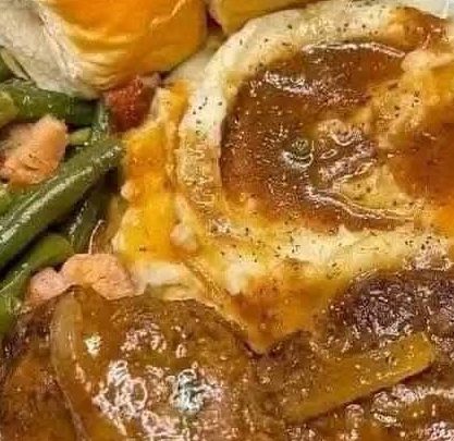Enjoy your hearty and flavorful Salisbury Steak with Onion Gravy!
