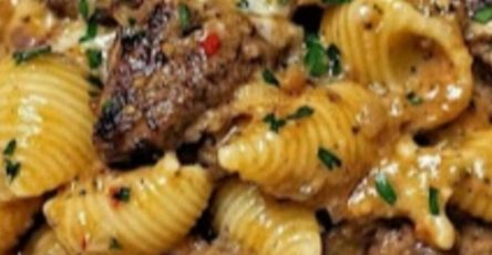 Add the red wine to the skillet scraping down the brown bits on the side. Allow it to simmer and reduce and slowly add chicken broth, and tomato sauce, and soy sauce. Slowly whisk in the flour. Add the sauce to the slow cooker.