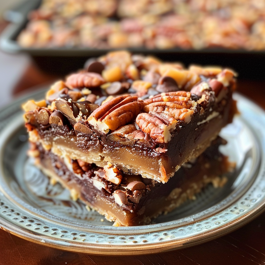 • Sprinkle pecans over the caramel.