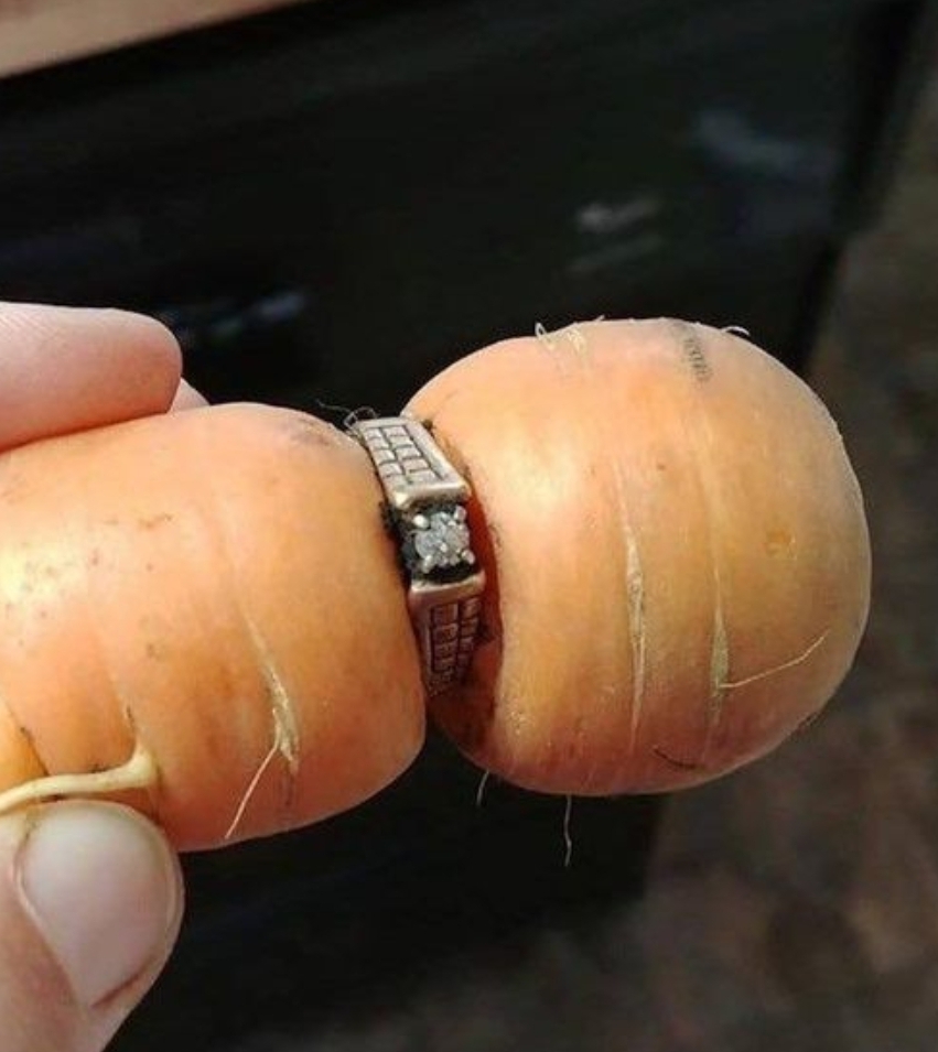 It’s not uncommon for people to stumble upon long-lost items in the most unexpected places. Whether it’s while cleaning out a cluttered garage or reorganizing a spare room, forgotten treasures often resurface. Jewelry, in particular, has a knack for disappearing and reappearing in bizarre ways—think earrings under refrigerators or rings lodged in shoe treads. But one woman’s story takes the cake: she found her missing engagement ring 13 years later—on a carrot.